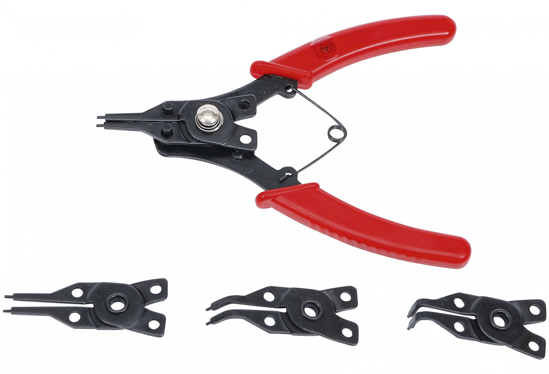 - Speciális seeger fogó, cserélhető fejekkel belső és külső gyűrűkhöz, a könnyed munka érdekében.