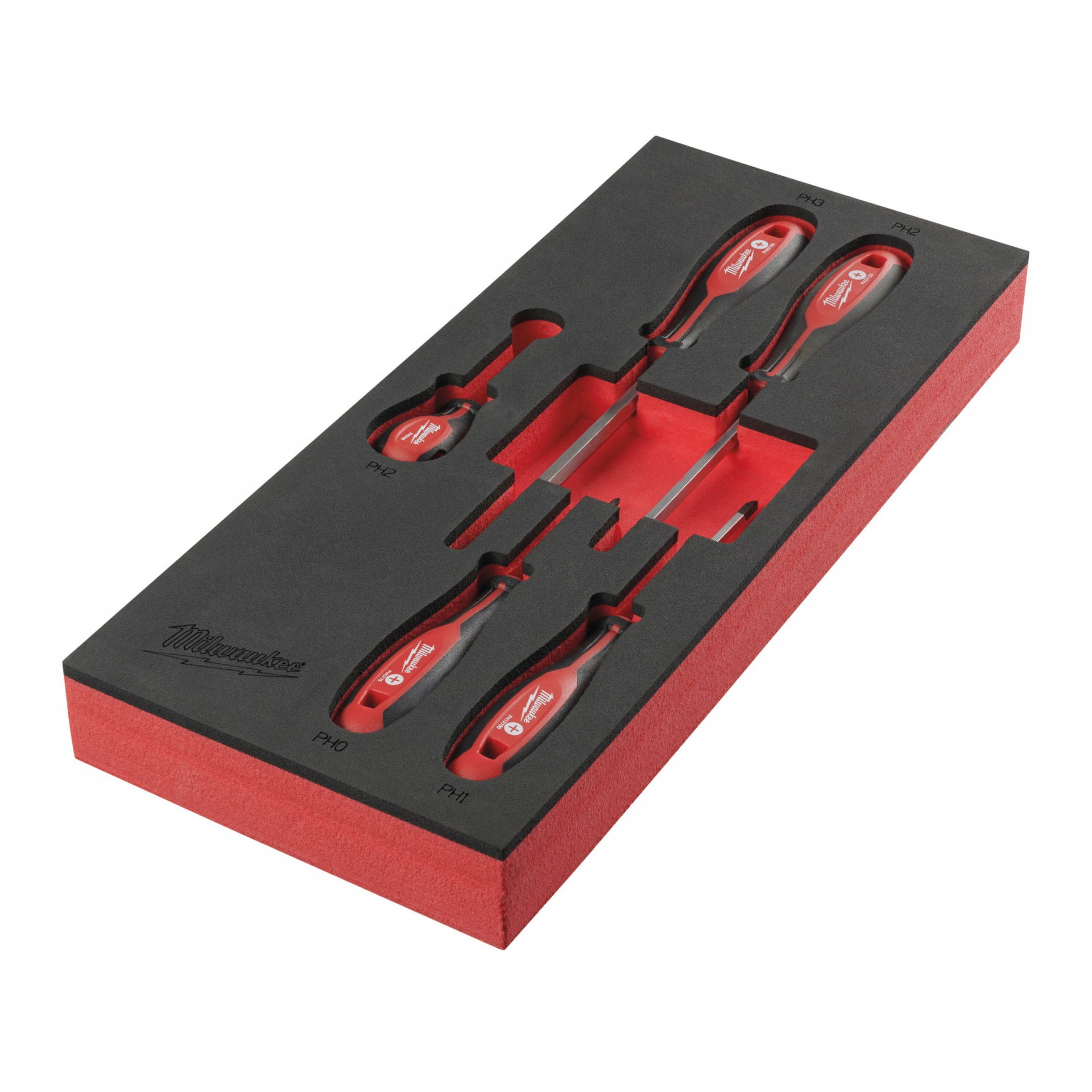 Milwaukee Phillips csavarhúzó készlet 3-oldalú markolattal habbetétben, 5 darabos
