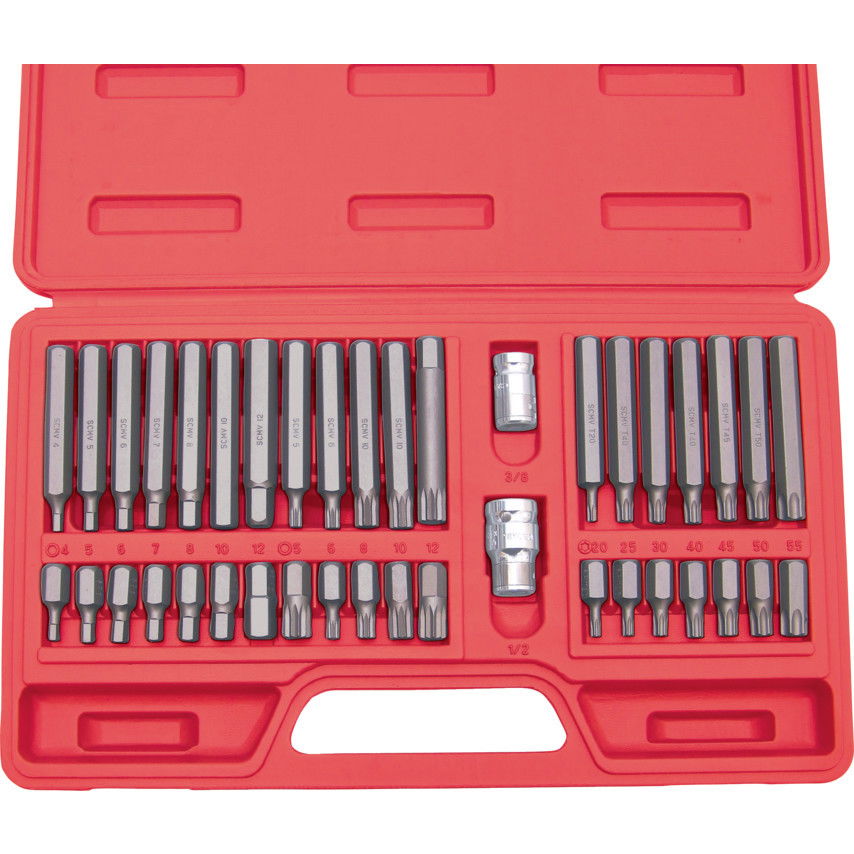 - 75 mm x 10 mm hatszög hegyek: Hatszög: 4, 5, 6, 7, 8, 10 és 12 mm. TX: Tx20, Tx25, Tx30, Tx40, Tx45, Tx50 és Tx55. XZN: 5, 6, 8, 10 és 12 mm.